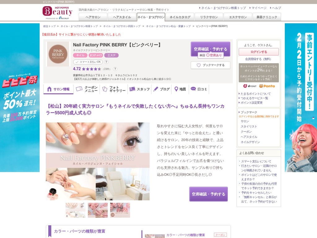| 松山市駅周辺 | ネイルサロンビビ | 学生向けリーズナブル価格が魅力 |